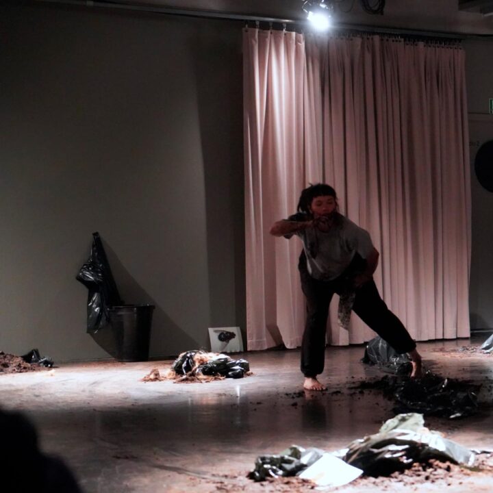 The mentorship process helped shape the work’s immediacy. Mitchener’s open call, bearing the prompt “Don’t Overthink It,” encouraged a direct and intuitive approach to creation. This ethos is palpable in Rubio Hernández’s piece, whose power lies in its openness. Larva is raw and urgent, embracing rough textures and spontaneous gestures rather than polished spectacle. Ultimately, Larva confronts the audience with the material reality of the earth and the fragile presence of the human body within it. The scent of mud, the weight of sound, and the tactile memory of soil mark the experience. Viewers are invited not simply to observe but to inhabit a space where body, environment, and memory merge.