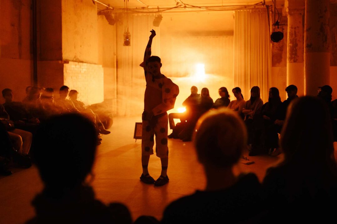 The solo is structured around failure by design. By attempting to reenact a premiere that never took place and reconstruct it through classical ballet—a discipline in which he has no formal training—Rybicki is destined to “fall short” on stage. Yet this failure is distinctly queer: it operates outside the binary logic of success and failure, in the sense articulated by Jack Halberstam in The Queer Art of Failure. In his 2011 book, the American scholar demonstrates that failing might open alternatives to the profit-oriented and success-driven culture of capitalism. Rybicki’s proposal operates precisely in the opening created by consciously engaging with the impossible, suggesting that failure may allow us to learn, experience, and feel what we could not have accessed by striving for a “success.” In accordance with the weak avant-garde’s terms, his performance evades mastery, moving towards discovery and vulnerability.